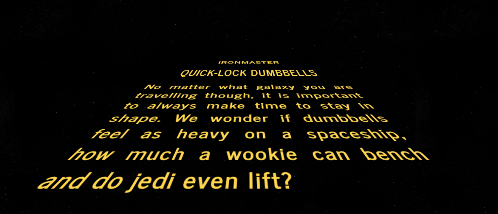 We have been contacted by many movie studios over the years about providing equipment that will be used for film productions and maybe even end up on the big screen. Ironmaster has never paid for product placement, but there have been some major Hollywood names reportedly working out with Ironmaster gear on set. To date, it never seemed to end up in a picture, or at least not in the final cut. Well, that has all changed. We are big in the UK and our enterprising Distributor, Ironmaster UK there has recently been working with people involved in movie productions that are filmed in England. During this process, we learned that some time ago, unbeknownst to us, Quick-Lock Dumbbells were purchased to be used in a Star Wars® movie and look where one ended up! Can you spot it?