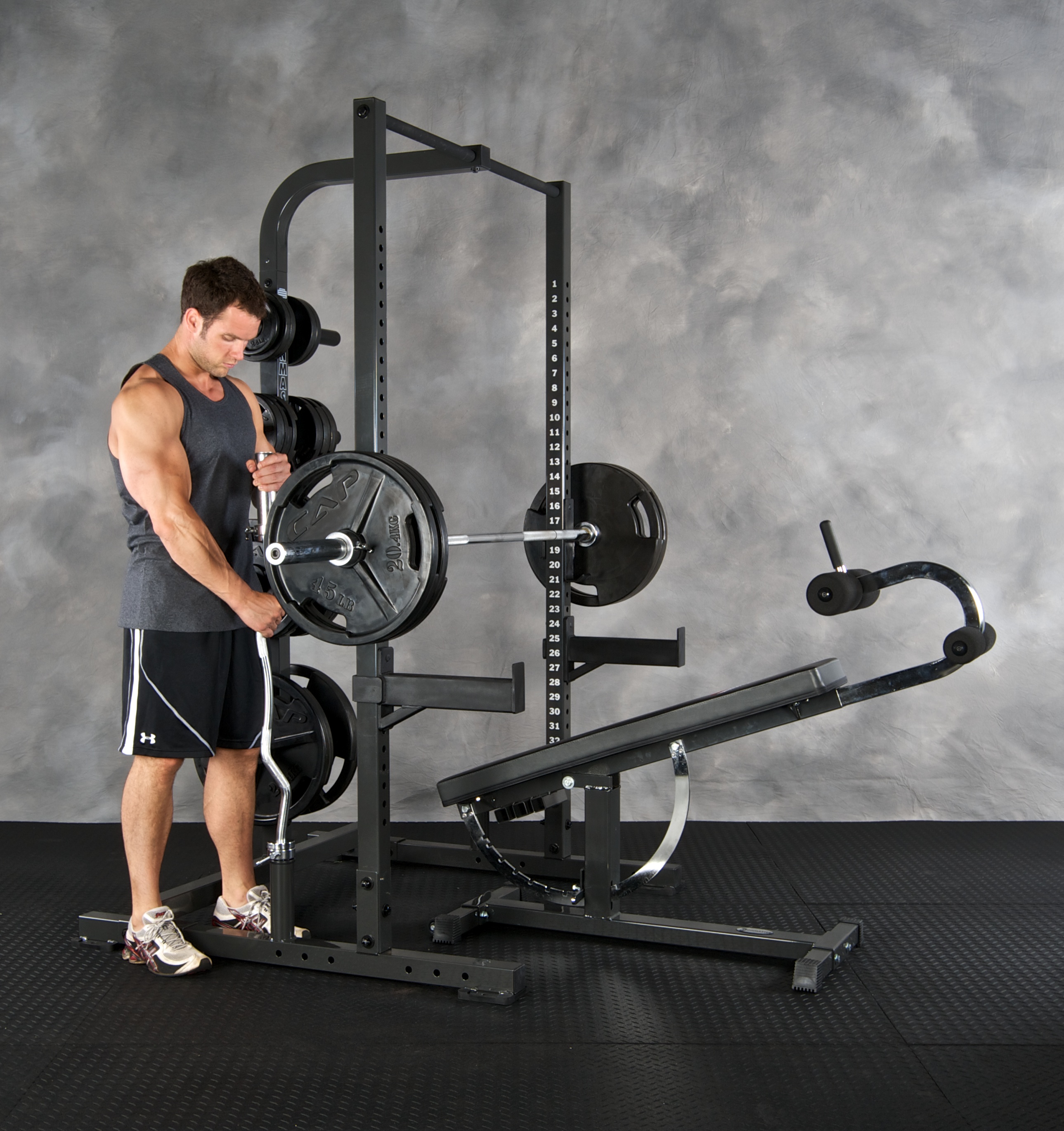 The weight bench is not the place to try being a hero. Benching more than you’re supposed to can cause injury or even your untimely death, so start light and increase your load slowly. If you’ve never benched before, try lifting about 22 pounds and work on your technique. You can add more weight once you have gained more experience. Don’t be ashamed to start benching with just the bar if that’s all you can manage at this stage.
