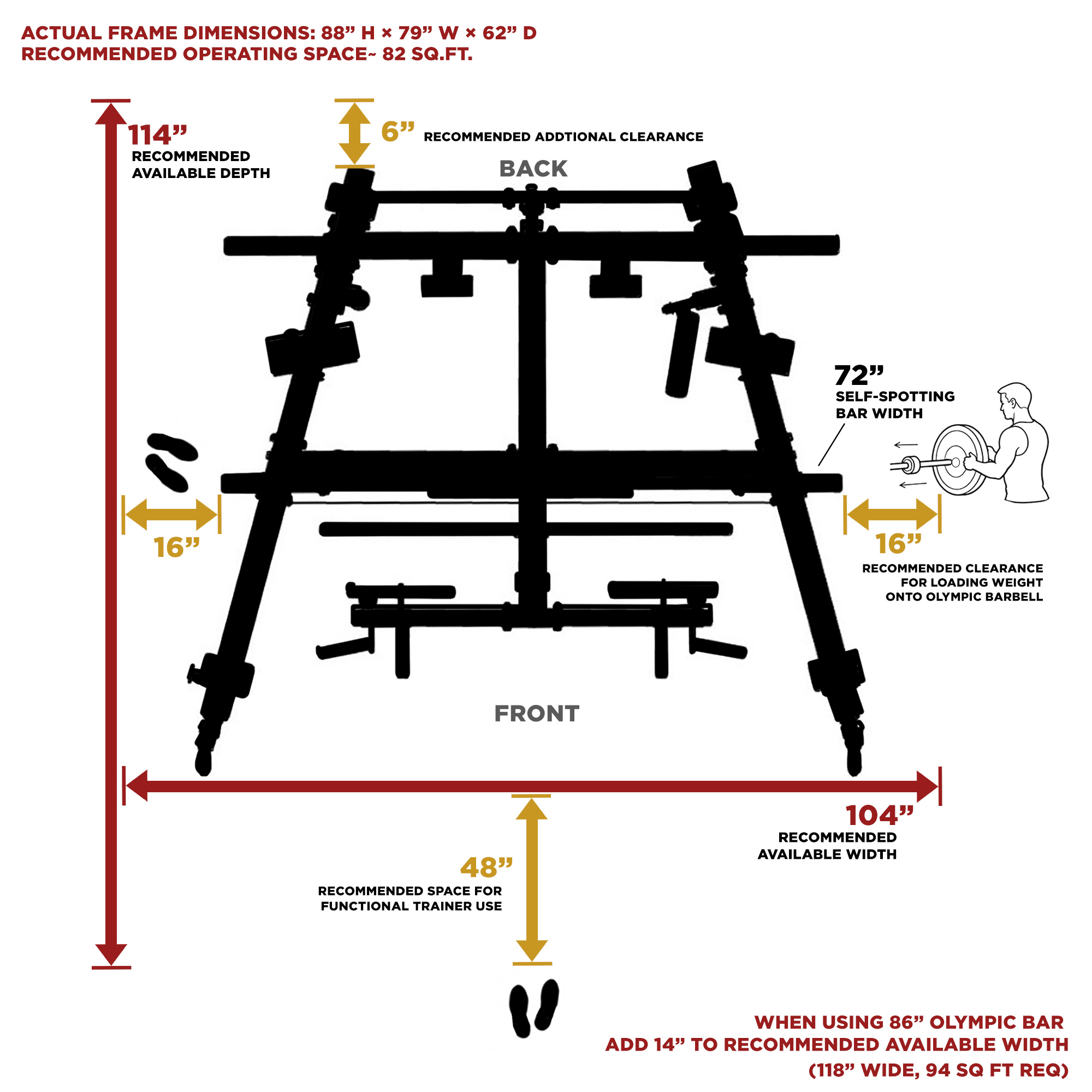 • Free-bar Olympic half rack (Olympic Bar, Bar Hooks, Safety Arms Sold Separately)